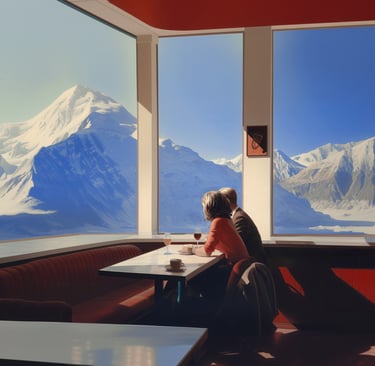 This series reflects on our relationship with the disappearing landscapes of ice and mountain. People sit and look toward glaciers and snow-covered peaks, aware of their beauty yet uncertain of how long it will last.